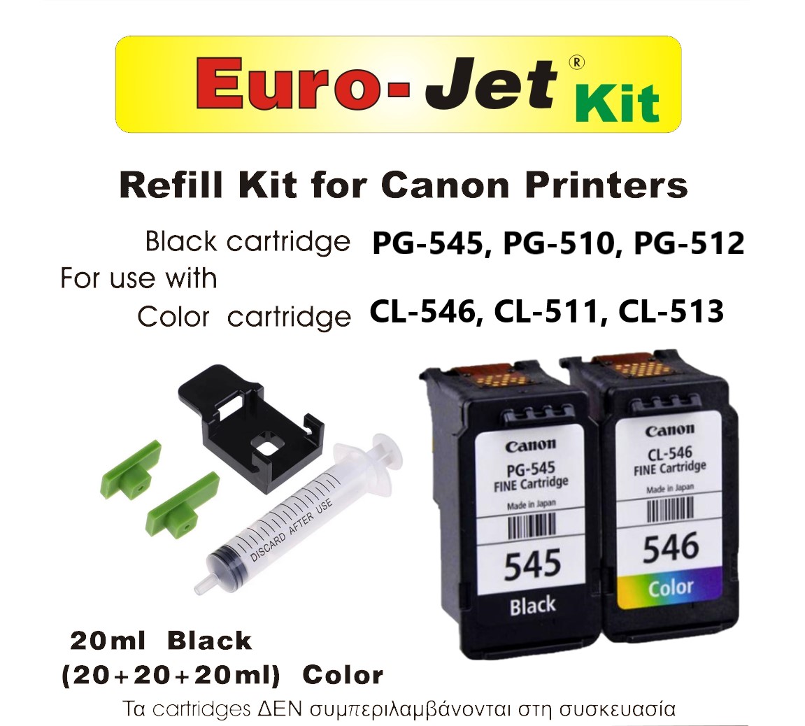 Αγοράζοντας το Refill-Kit της Euro-Jet γεμίζετε το μαύρο μελανοδοχείο της CANON ≈2 φορές και ≈6 φορές το έγχρωμο.